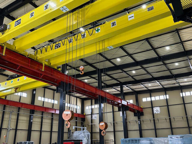重量物や大型機械の保管・搬出入にも対応できるよう、各倉庫には20t×2基、30t×1基の天井クレーンを完備。